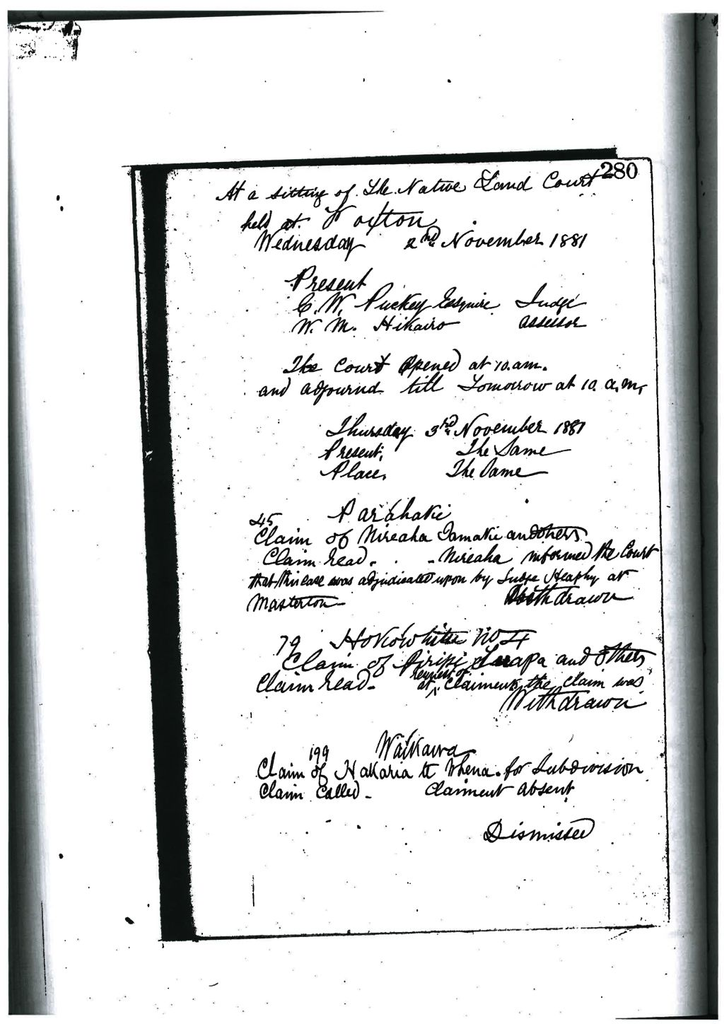 Otaki Maori Land Court Minutebook - 2 November 1881.