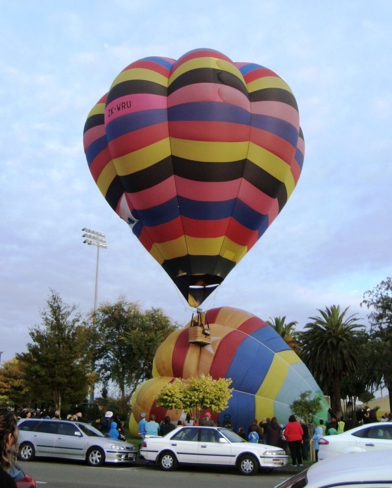 2011 Balloons - Friday morning balloons and crowd by Levin Aquatic Centre