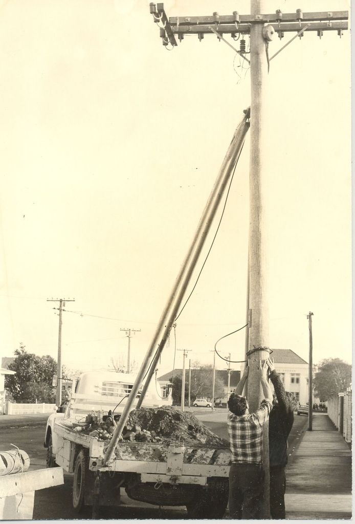 Penciled on back - Removal of Post Office telephone poles in Bath St. as part of a general tidying up programme for the area around Levin’s new shopping mall. Wed. June 9, 1971.
