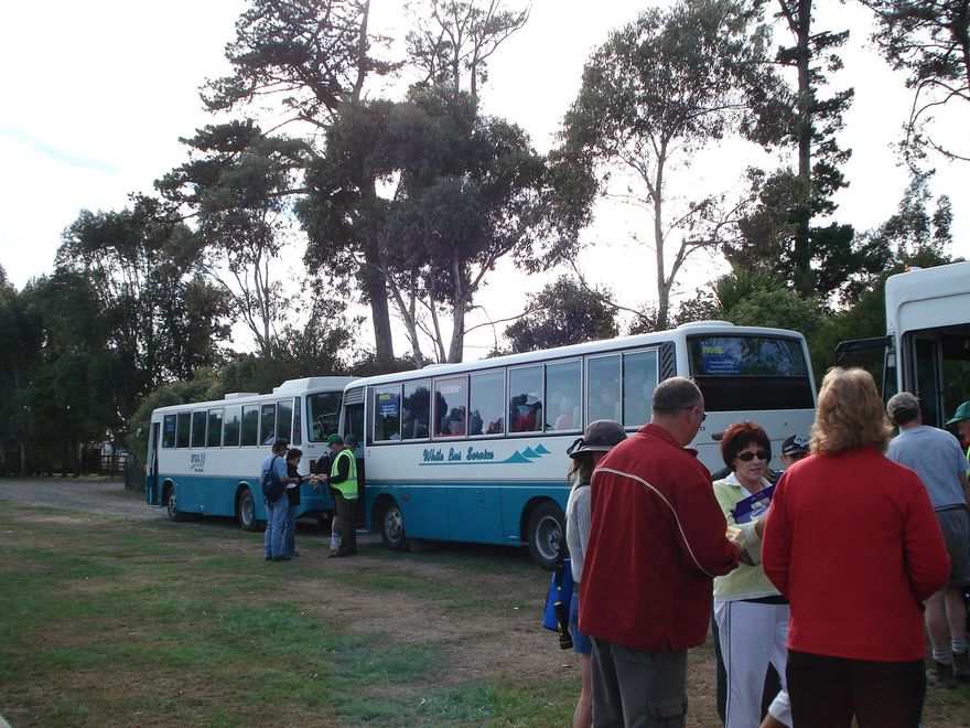 At the Ashhurst Domain buses were waiting to take the 1,200 walkers to the start of the walk - through the Manawatu Gorge by the crushed lime works.