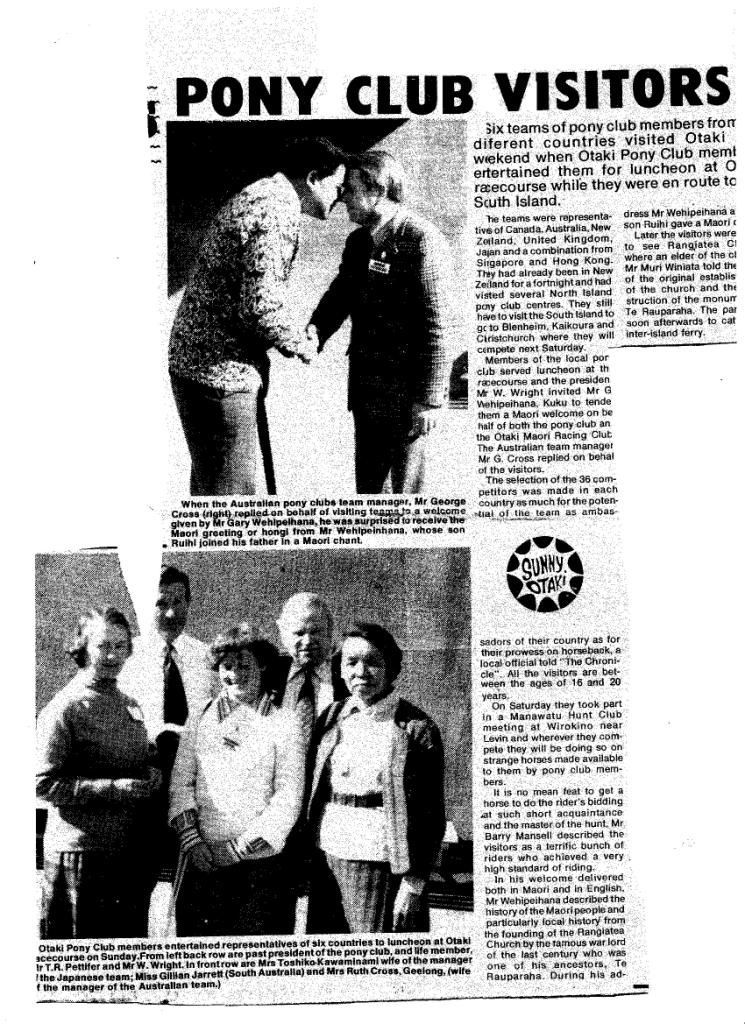 Newspaper article on six teams of pony club members from different countries visited Otaki: