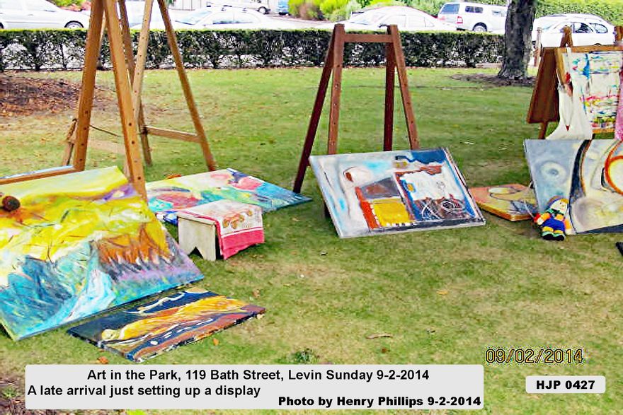 HJP 0427 Art in the Park, 119 Bath Street, Levin Sunday 9-2-2014 A late arrival just setting up a display