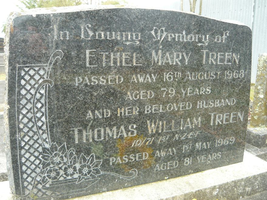 The Headstone of Thomas William Treen and his wife Ethel Mar Treen (nee Benger)