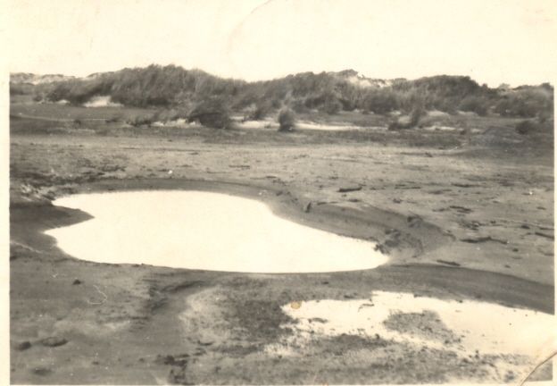 Sinkhole on flat as a result of earthquake at Foxton Beach 1942