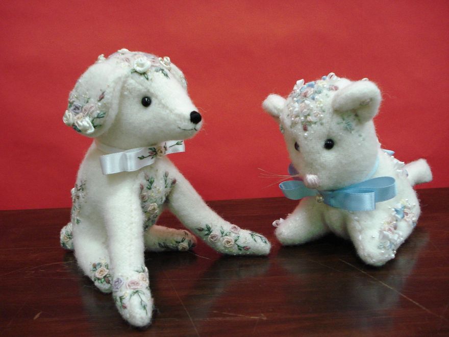 beads ribbon embroidery and bullion roses on wool blanketing.