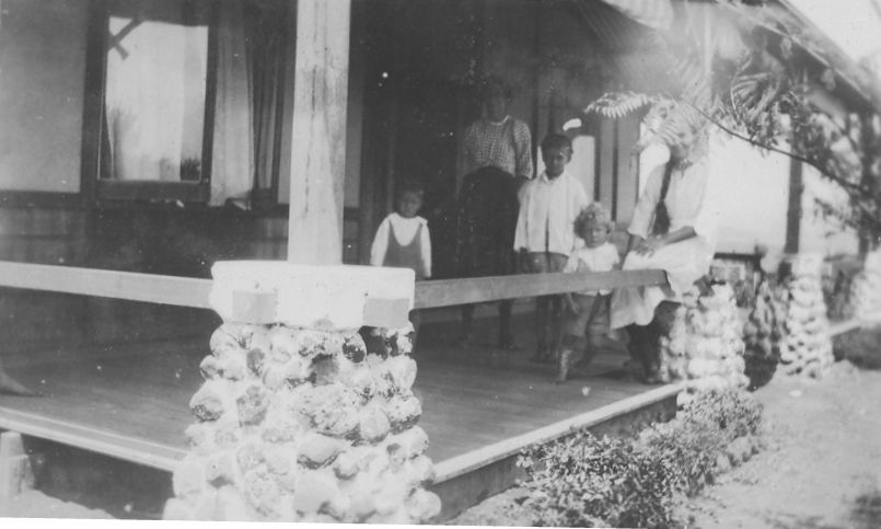 Sutton’s Homestead, Terornora? Family group on the veranda.