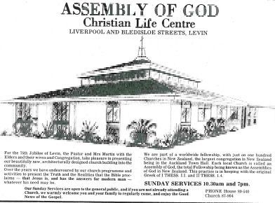 Liverpool and Bledisloe Streets, LevinFor the 75th Jubilee of Levin, the Pastor and Mrs Martin with the Elders and thier wives and Congregation, take pleasure in presenting our beautifully new, architecturally designed church building into the community.