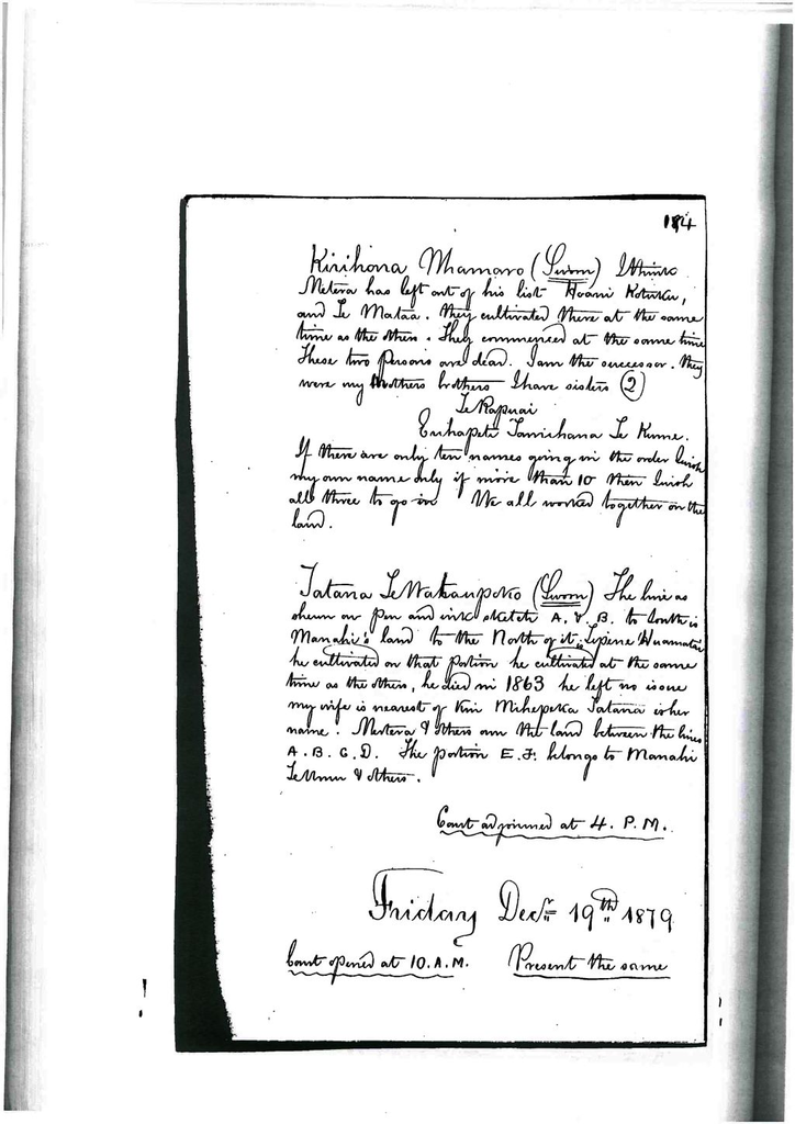 Otaki Maori Land Court Minutebook - 19 December 1879.