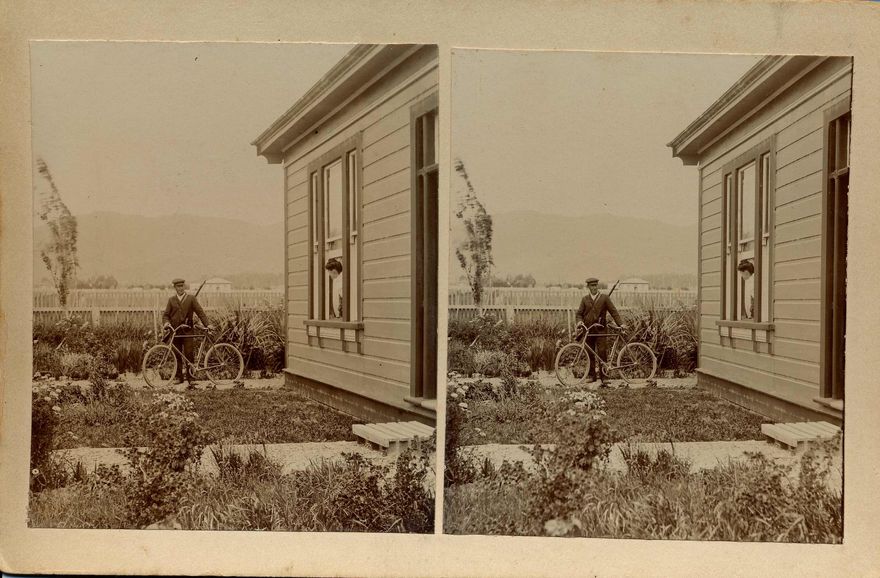 Hallam’s house before verandah added, Shannon, 1907 1 B&W stereoview [mounted twin photographic prints]