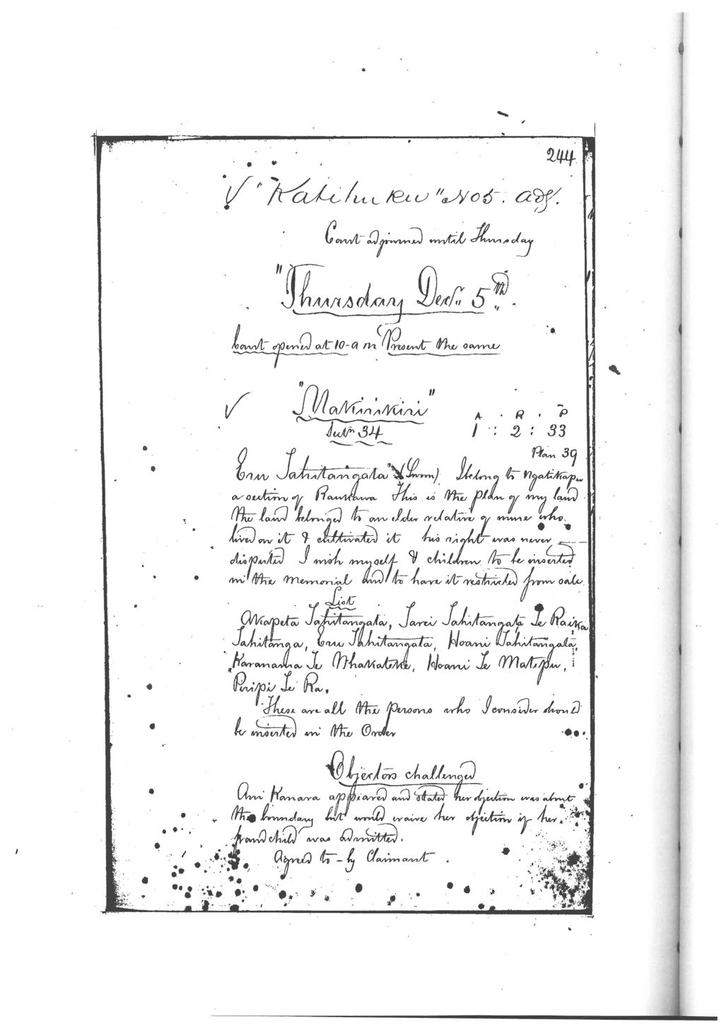 Otaki Maori Landcourt Minutebook - 5 December 1878 .