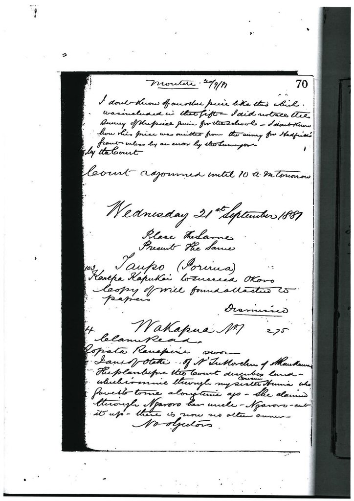 Otaki Maori Land Court Minutebook - 21 September 1881.