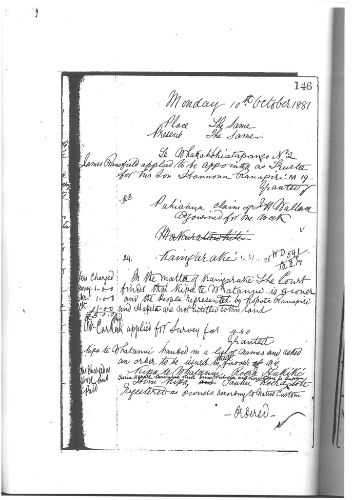 Otaki Maori Land Court Minutebook - 10 October 1881.
