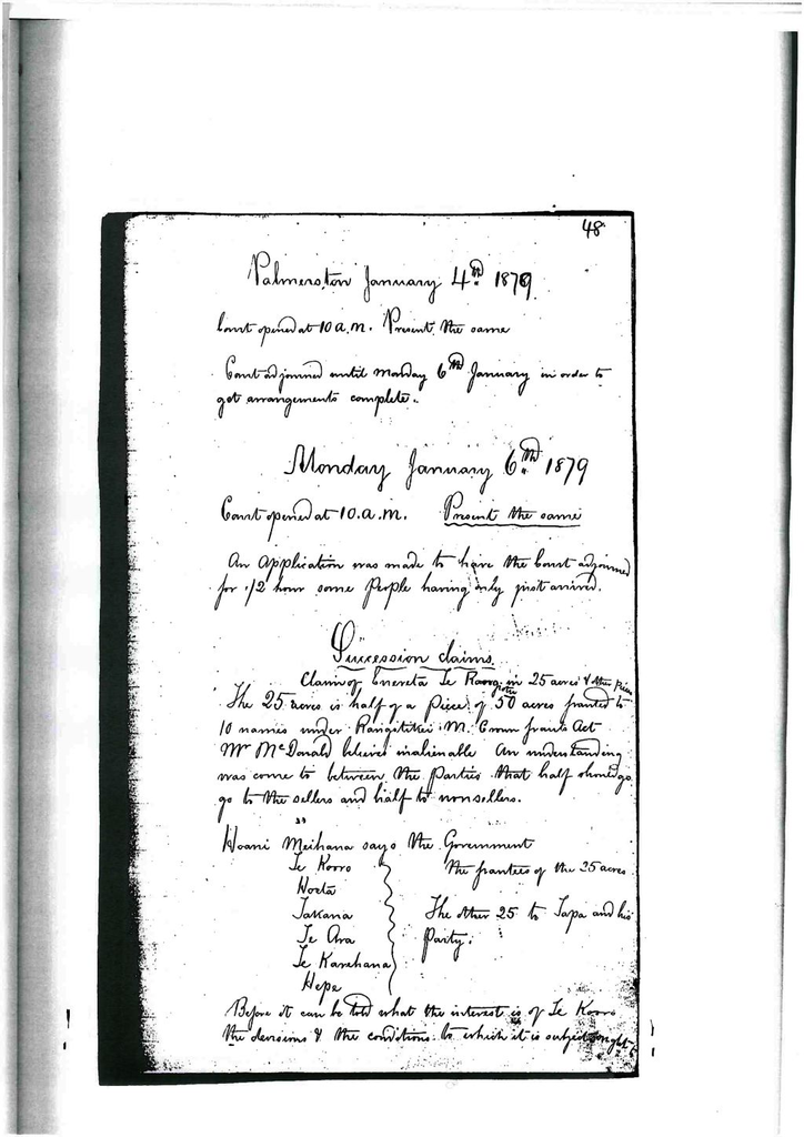 Otaki Maori Land Court Minutebook - 6 January 1879.