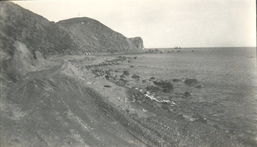 13/6/55 Pencarrow Hd. from north. [Originally hand written on edge of negative ? as faintly visible on the print, but must be viewed in a mirror as the printing is reversed]