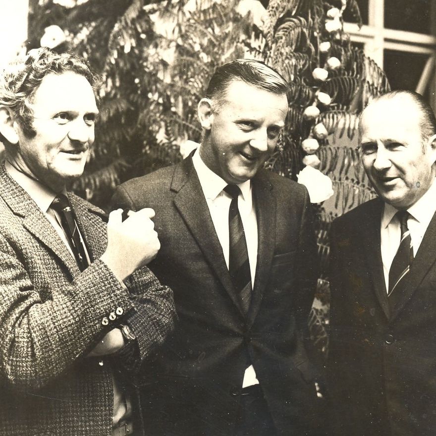 Penciled on back - Mr J.H. Lucas, principal of Kohitere, Mr P.T. Woulfe, principal of Hokio School & Mr J.R.P. Horn S.M., at the Levin Police Sports & Social Club evening. Mon. Dec. 7, 1970.