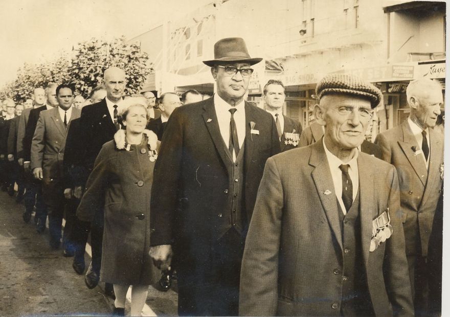 Penciled on back - Parade to mark Anzac Day and the 50th Anniversary of the Levin R.S.A. Sat. April 26, 1969.