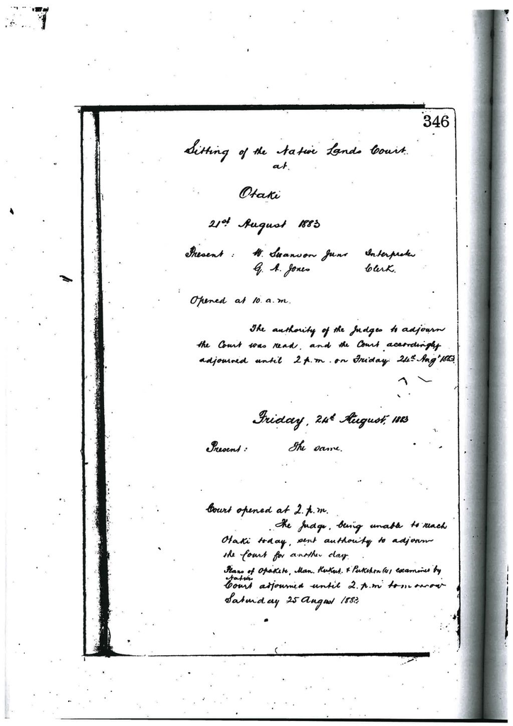 Otaki Maori Land Court Minutebook - 21 August 1883.