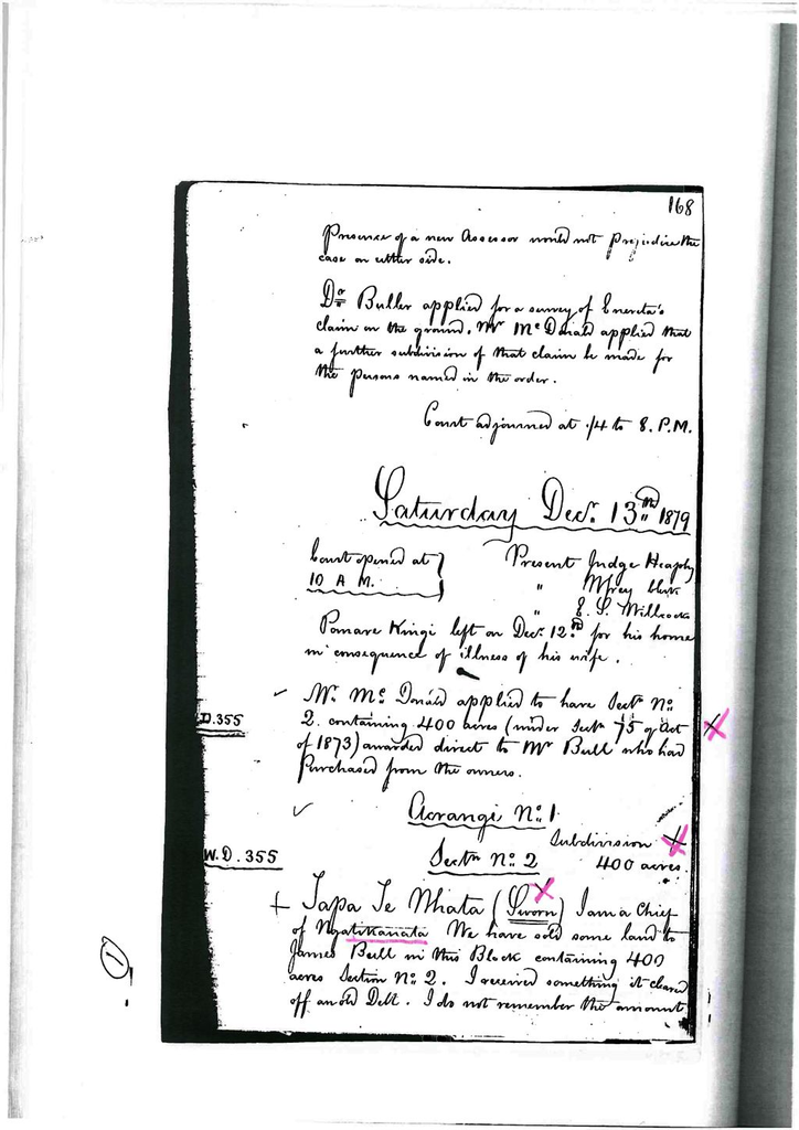 Otaki Maori Land Court Minutebook - 13 December 1879.