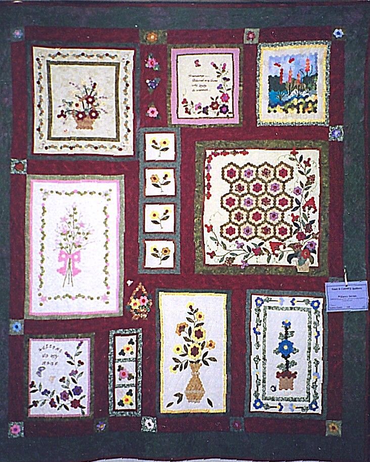 Hand-pieced and hand-quilted made of quarter-inch hexagons.