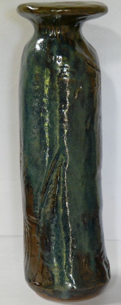 Heavy vase made by wrapping a textured slab around a former. H 26 cm.