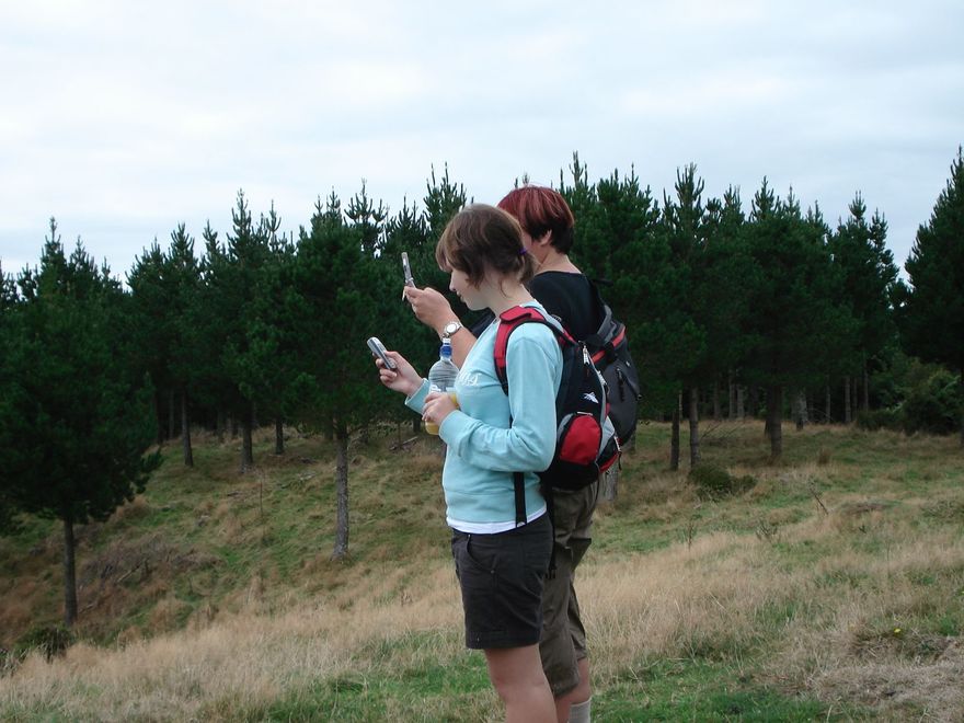 Can you believe it - on top of the world with a wonderful view over Horowhenua and they have to check their cell phones!