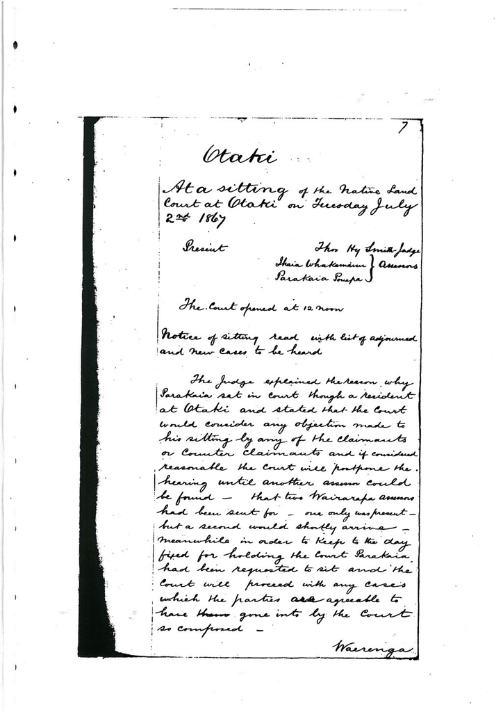 At a sitting of the Native Land Court at Otaki on Tuesday July 2nd 1867