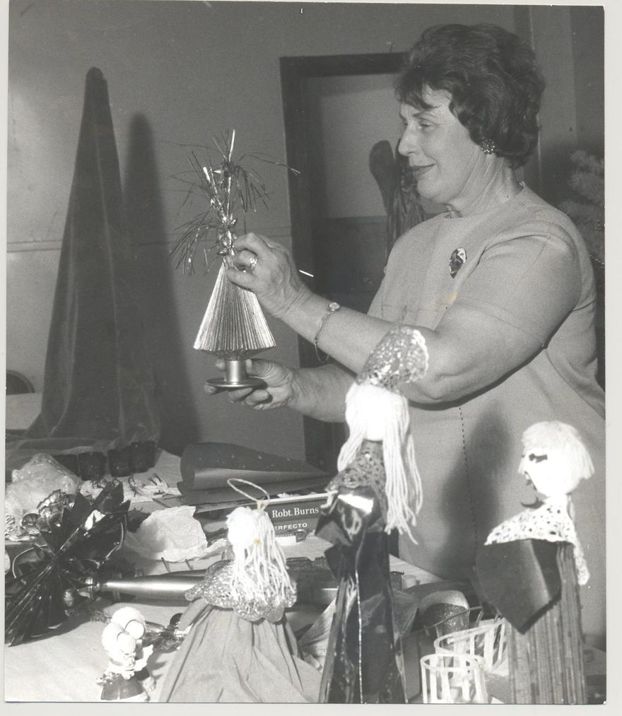 Penciled on back - Mrs Ron Buick, Masterton, at the Christmas meeting of the Townswomen’s Guild held in the Memorial Hall. Sat. Nov. 28, 1970.