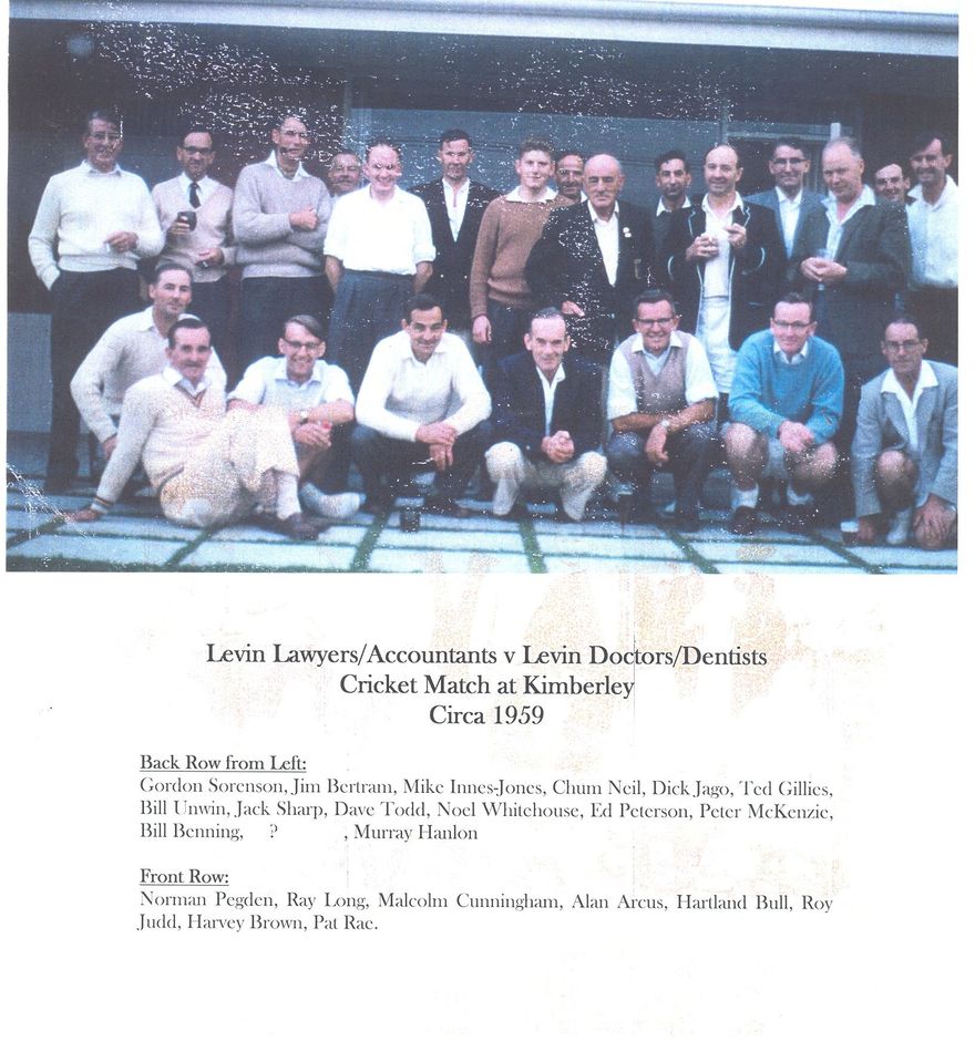Levin Lawyers/Accountants v Levin Doctors/Dentists, Cricket Match at Kimberley, c.1959