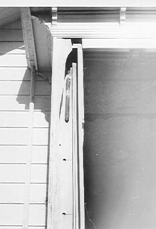 Close-up of window sash-weight and pulley on the building that was the original home of Nga Tawa School for Girls at the Waring-Taylor property in Kingston Road, Shannon. The school was established by Miss Mary Taylor in 1891 and relocated to Crofton Road, Marton in 1906. It is now situated in Calico Line, Marton. This photograph was taken some years after the school had moved to Marton.