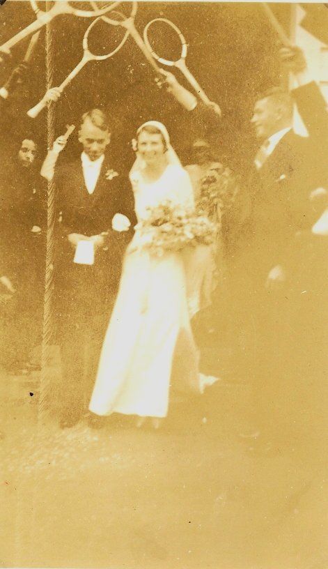 Annie Plasters Wedding – Bride and Groom leaving the wedding surrounded by a Guard of Honour holding tennis rackets.