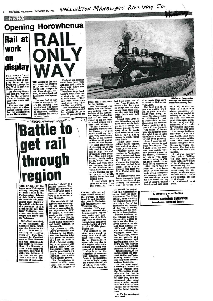 The Horowhenua may not have been settled for possibly 10, 20 or even 30 years after the 1880s had it not been for the railway.