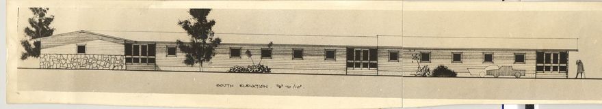 Printed on original drawing as caption - South Elevation. 1/8” to 1’-0”.