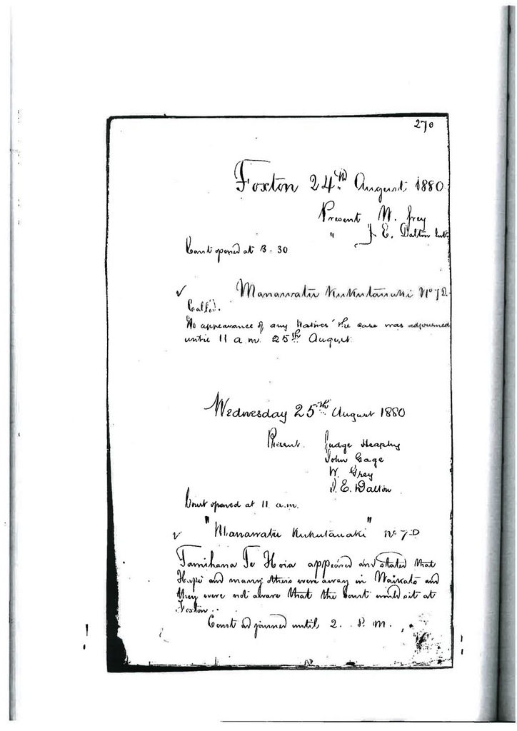 Otaki Maori Land Court Minutebook - 25 August 1880.