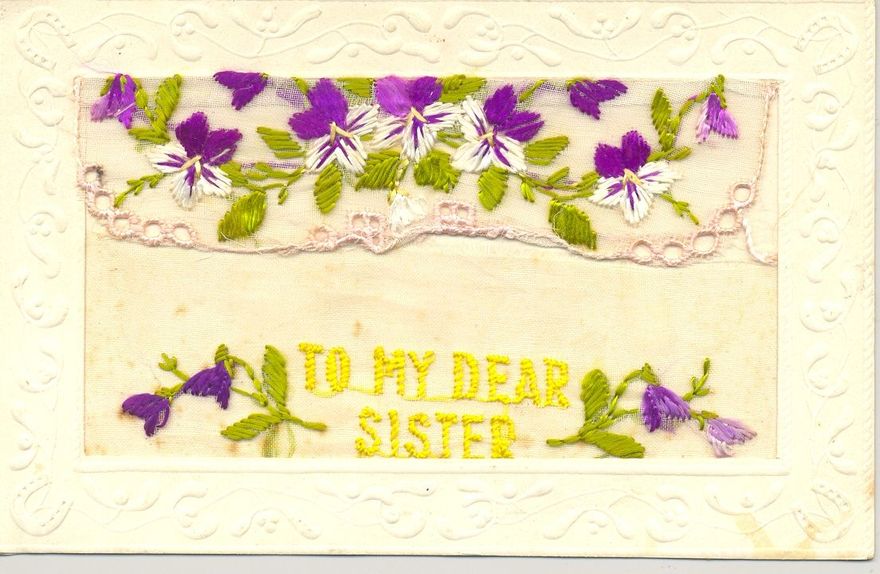 To My Dear Sister – an embroidered postcard.