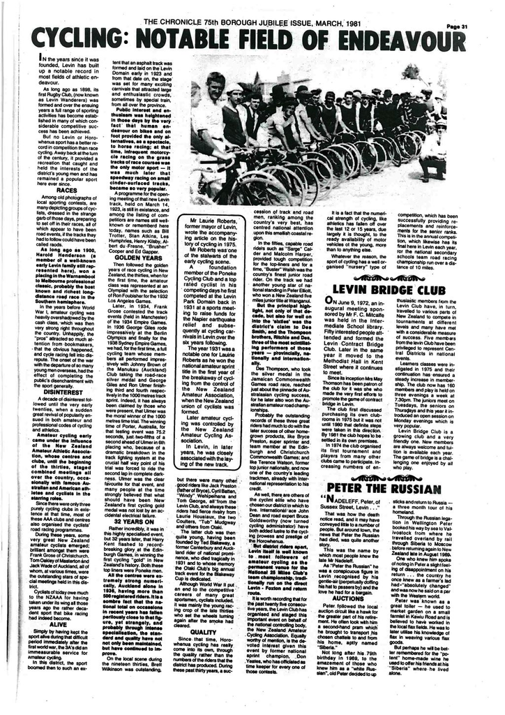 Cycling: Notable field of endeavour:In the years since it was founded, Levin has built up a notable record in most fields of athletic endeavour.