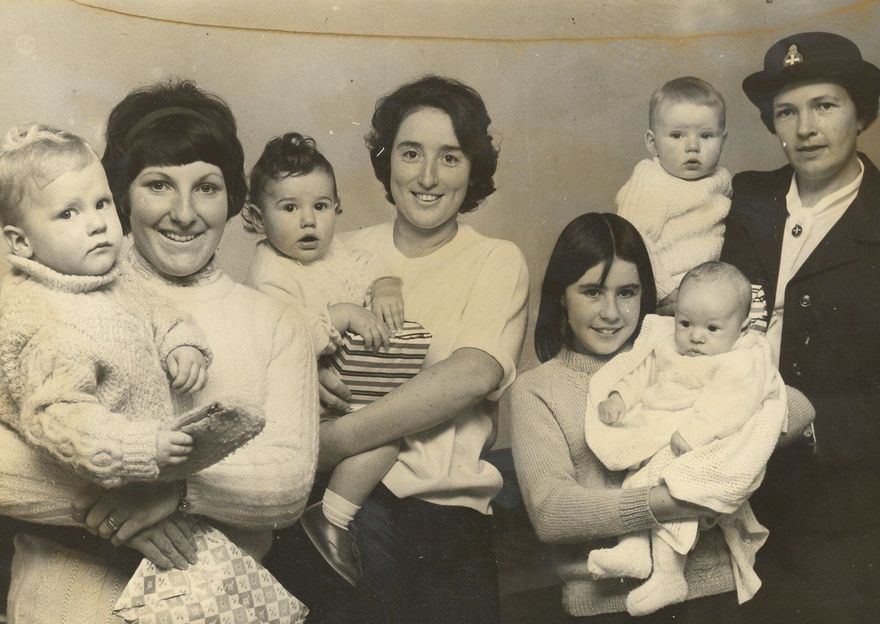 Left to Right - Mrs C.M. Gore & Christopher. Mrs G.F. Davidson & Vicki. Miss Sandra Dixion holding Barry Stead. Mrs P. MacLachlan & Malcolm.