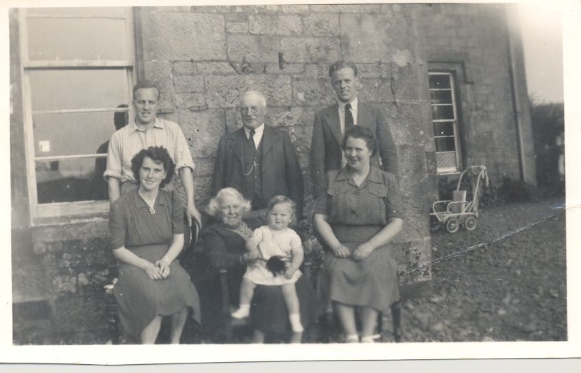 McGavin’s at Kirkonnel, 1949 Back row, Bobby, uncle Bob, Jimmy Front row, Betty, aunty holding baby Alison, Ellen
