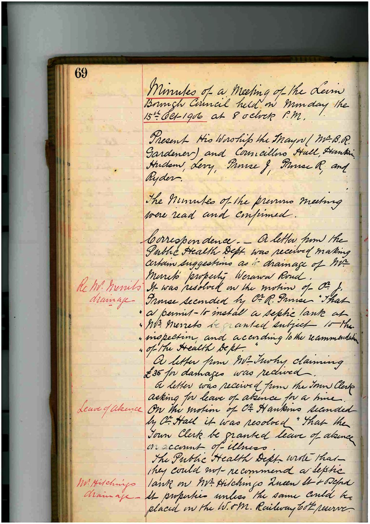 Minutes of Council Meeting 15 October 1906