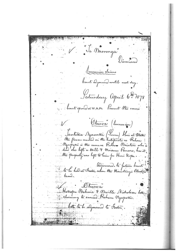 Otaki Maori Landcourt Minutebook - 6 April 1878.