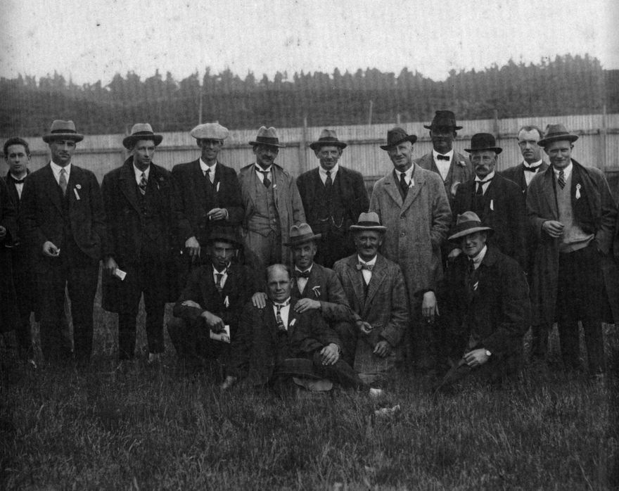 Foxton United Sports Association members at the Foxton racecourse 1924 – 25. Those in photograph from left to right:-