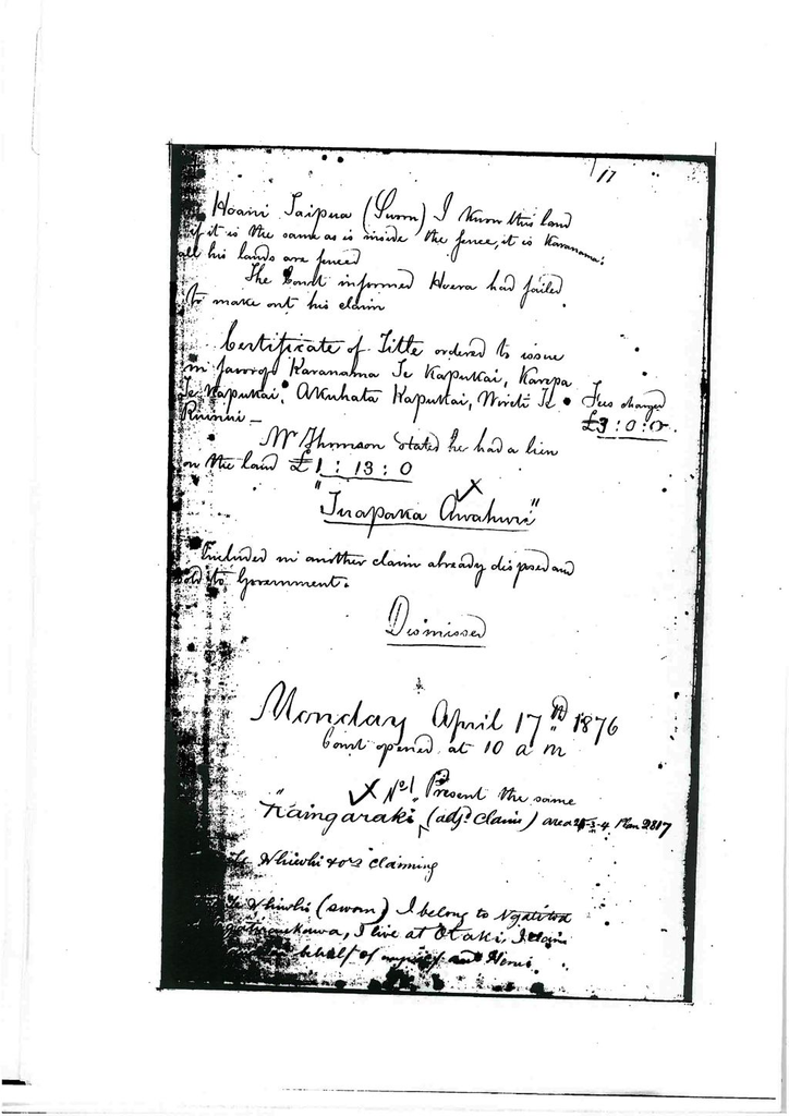 Otaki Maori Landcourt Minutebook - 17 April 1876