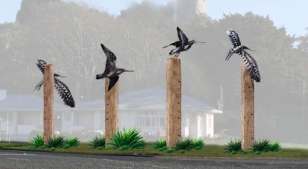 The metal birds celebrate the annual visit of thousands of the migratory birds to the Manawatu Estuary, a designated Wetland of International Importance, south of Foxton Beach.