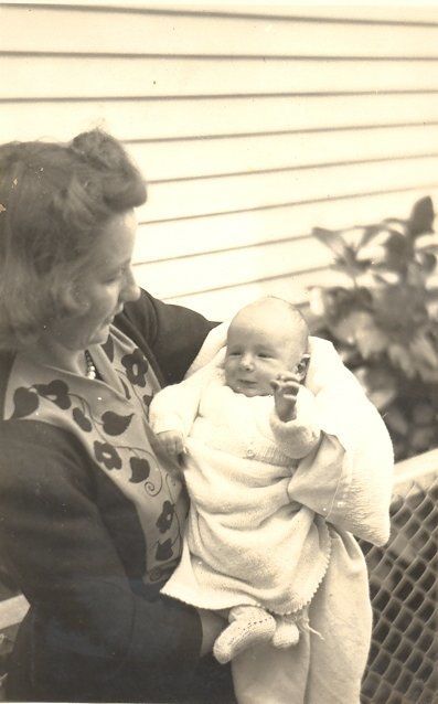 Olive Worboys and baby son Brian (6 weeks), 1946