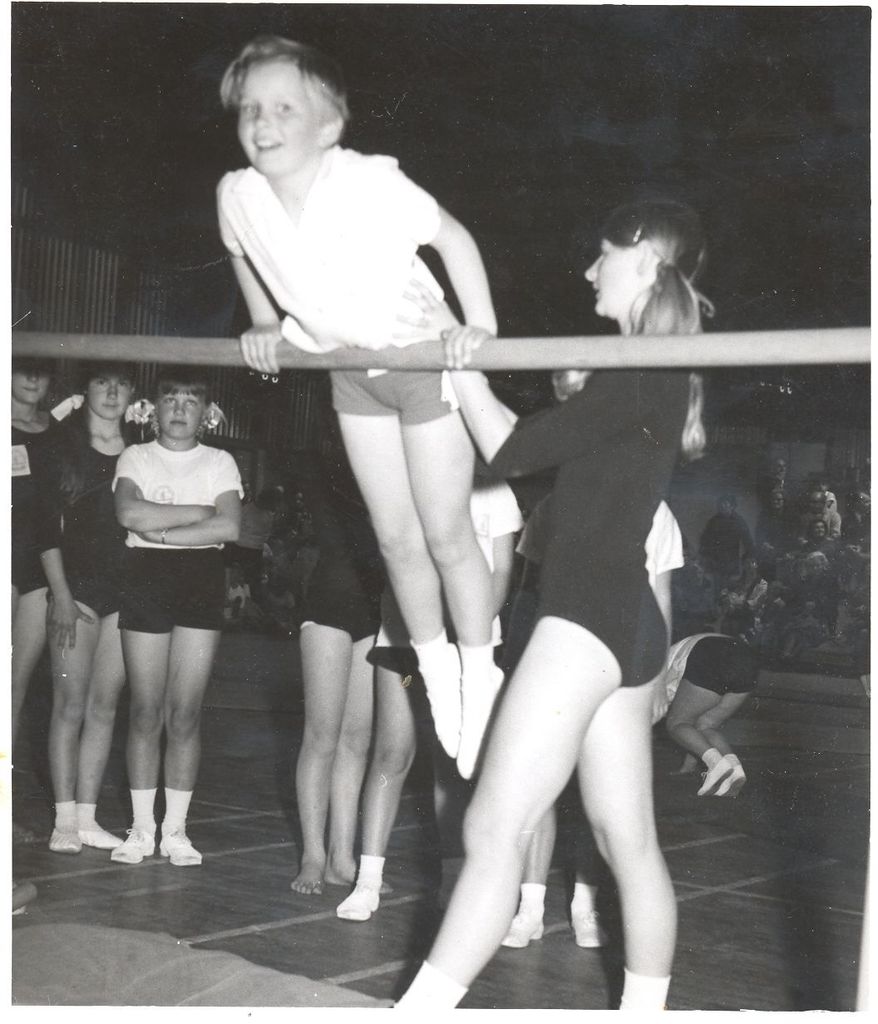 Penciled on back - One of the girls in the junior section at last Saturday’s display staged by the Levin Physical Welfare Club is helped by an instructor, Miss Barbara Howard. Wed. Oct. 22, 1969.