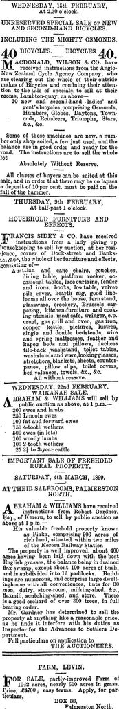 AT THEIR SALEROOMS, PLAMERSTON NORTH.