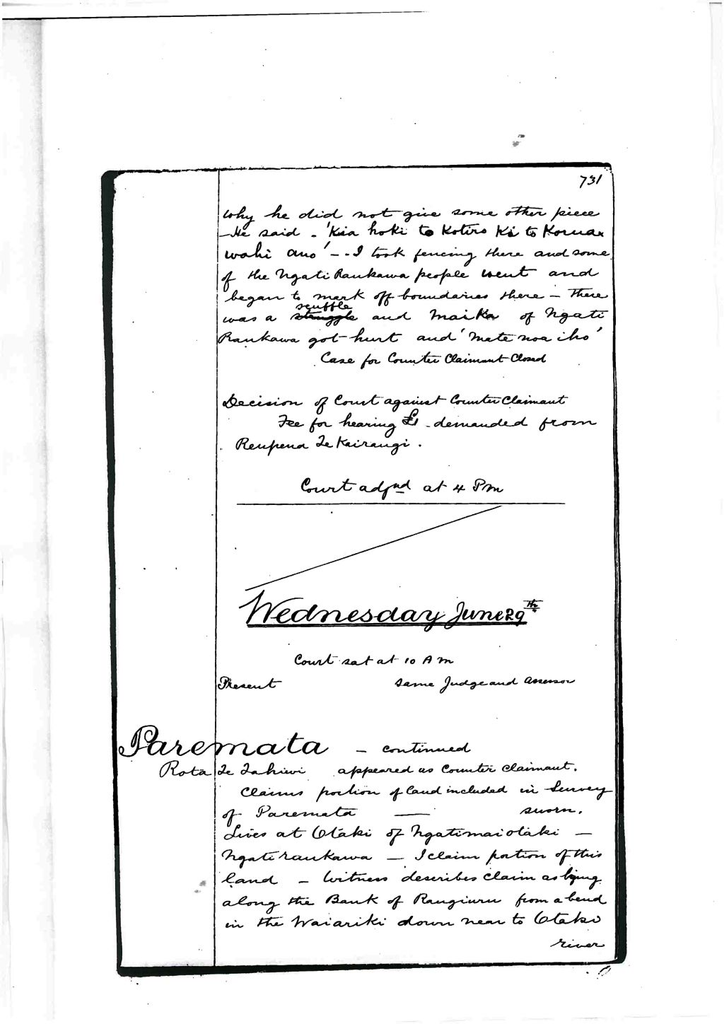 The court decided that the counter claimant had so far proved his case as to show that Tamihana Rauparaha was not entitled to a certificate of title for the land claimed by him.