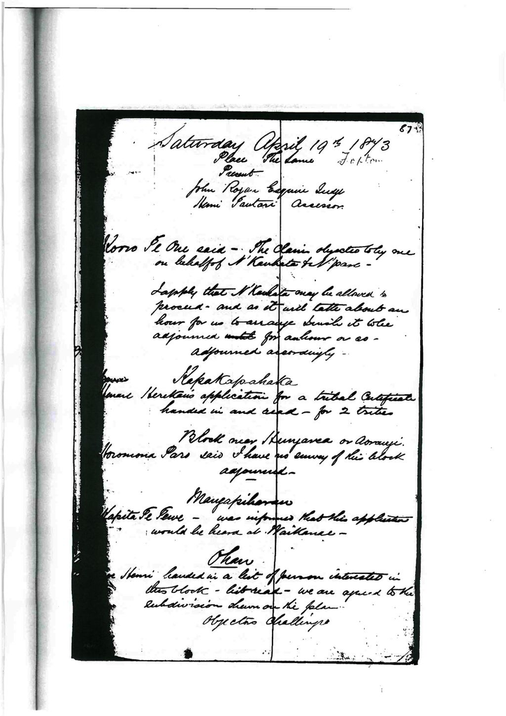 Hare Hemi – handed in a list of person interested in this block – list read – we are agreed to the subdivision shown on the plan.