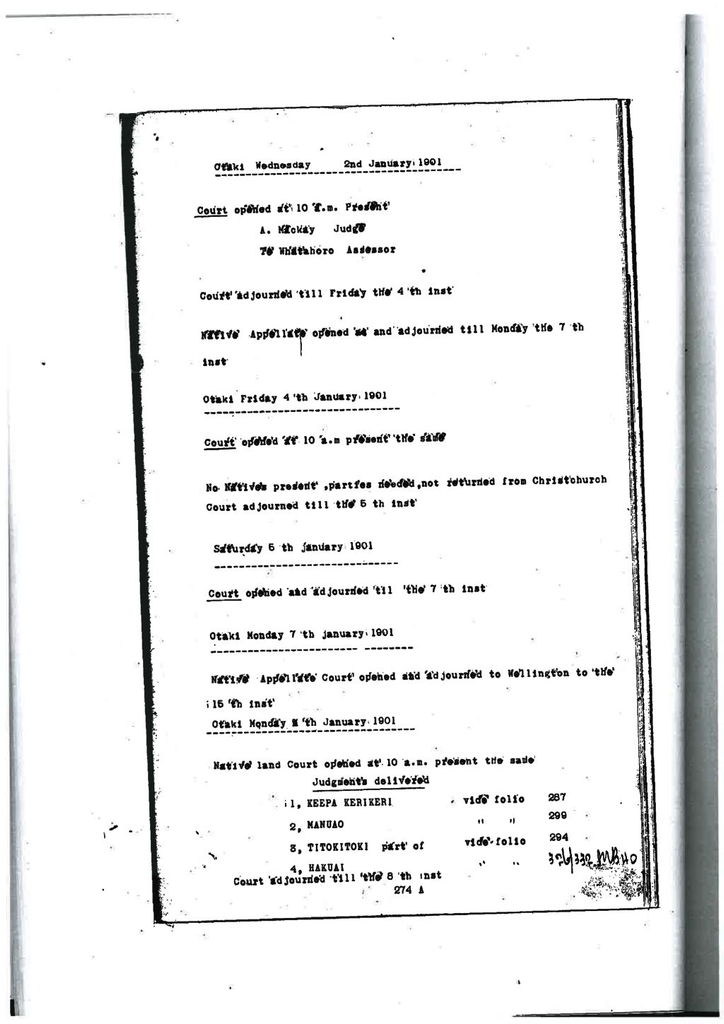 Otaki Maori Land Court Minutebook - 4a January 1901.