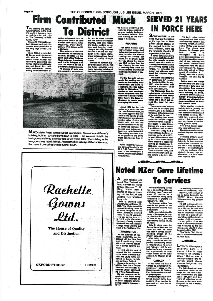 A Levin resident and noted New Zealand aviator, 83 year old retired Group Captain T. W. (Tiny) White, had a lifetime of service covering both the RNZAF and various New Zealand Army units.