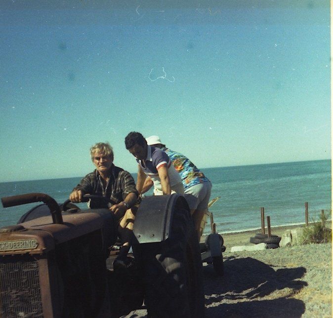 Riding on the tractor – beach scene.